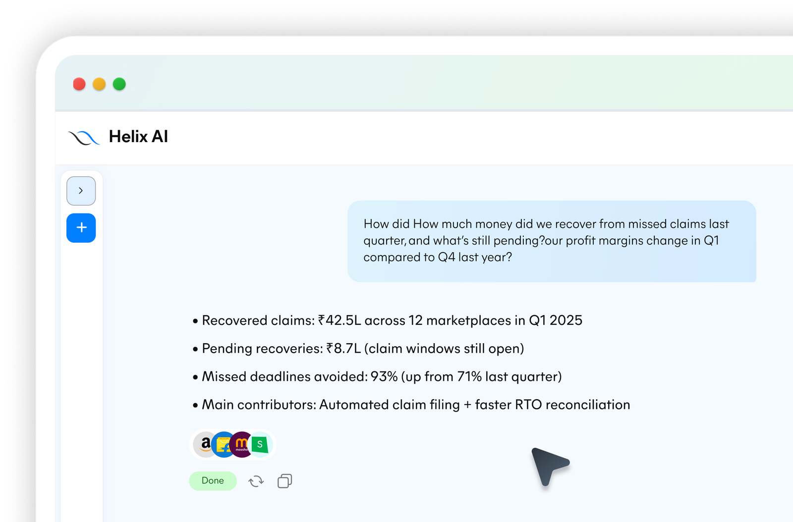 Helix AI doesnโt just report data โ it actively analyses, detects leakages, and forecasts outcomes across profitability, payments, and supply chain planning