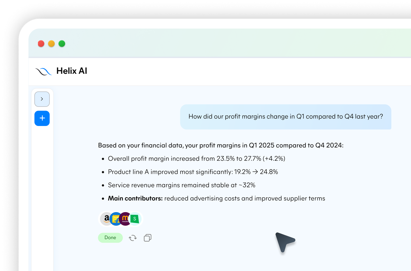 Helix AI reveals causes, cash leaks, and growth drivers.